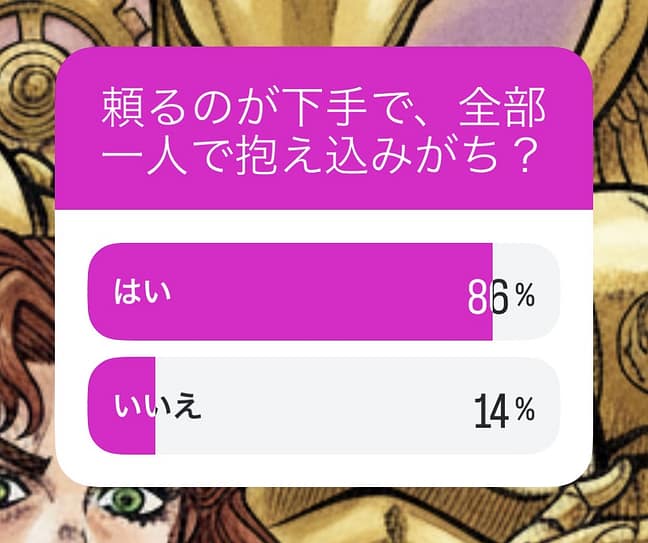 今回の本音100本ノック10日間で最も高い数値、86%もの人が「他人に頼ること(受容)」にブロックを感じているという結果です。